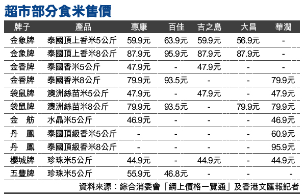 超市部分食米售價 (圖)