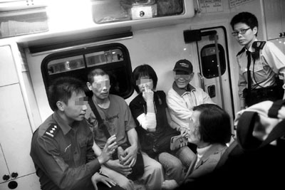 大鬧救護車不肯下車4名內地遊客年約50歲,據說來自北京,3名傷者雖願意下車入院接受治療,但仍堅持要港鐵支付醫藥費。