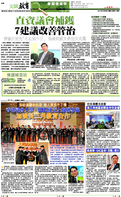 前任香港浸會大學校長、現任UIC校長吳清輝認為,對於上海及長三角地區的學生而言,浸大及UIC上海辦事處的設立,將為他們接觸港式高等教育,體驗全人、博雅等創新教育理念,提供更加暢通、更為直觀的管道。同時辦事處還將與上海當地及周邊地區的企業建立良好的合作關係,為兩校的畢業生建立廣泛的就業管道。