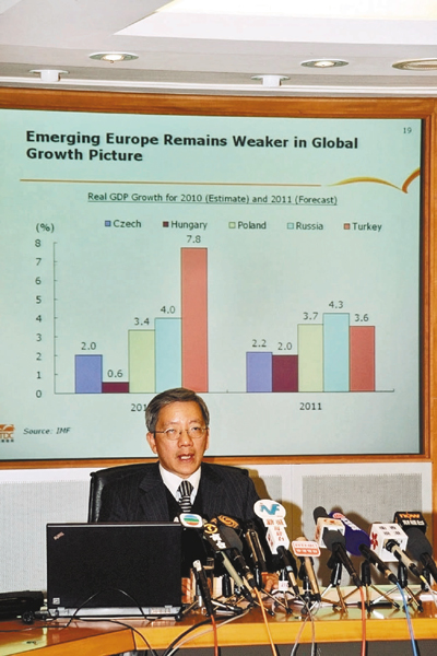貿發局報告指出,由於成熟市場的商家補充庫存的採購活動已接近完成,而消費市場在短期內亦不會出現強勁需求,料明年出口增長只有8%。梁海國說,香港出口增長不可能長期維持在高水平,今年錄得顯著升幅的其中一個原因是前年基數偏低,以及市場對高科技和其它個別產品需求殷切,若明年增長降至8%,亦只是回復到金融海嘯前的正常水平,強調表現並非特別差。