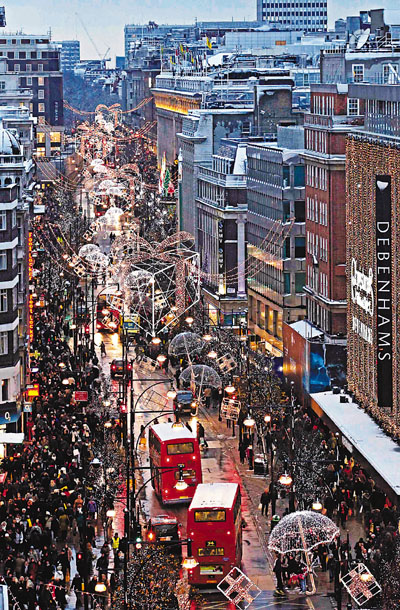 ■英國:倫敦牛津街擠滿購物的民眾,趁下月新增值稅生效前搶購。 路透社