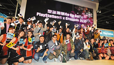 200名早前於網上登記以優惠價團購PSP和PSP go的市民,昨日到遊戲展取機。原價1,380元及1,899元的PSP和PSP go均以950元團購,各有100個名額。接受登記後20分鐘,名額即時爆滿。成功登記的黃小姐(小圖)昨日到場取機。她本來打算替朋友和自己各買一部,但用了15分鐘才替朋友成功登記。當她再嘗試為自己登記時,經已額滿。