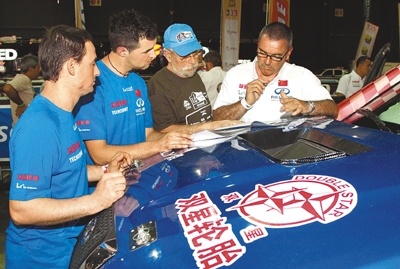 ■車檢人員對中國車隊進行人車雙檢。 新華社