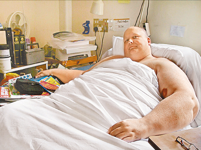 英國人梅森曾是全球最肥的男子,一度重達840磅,但他接受了縮胃手術後,在1年內減去280磅。現在,他終可下床出屋,感到很高興。