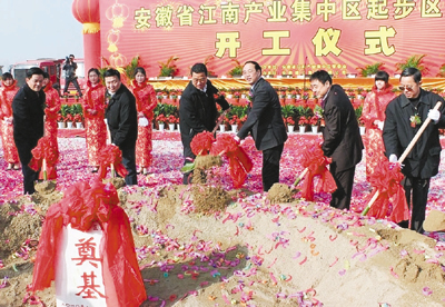 ■總投資約30億元人民幣的江南集中區起步區動工建設。圖為奠基儀式現場。