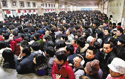車站工作人員表示,從元旦開始,前來車站窗口購買返鄉車票的旅客就明顯增加,尤其是上午,售票大樓內幾十個窗口同時開放,購票隊伍還是有10多米長。