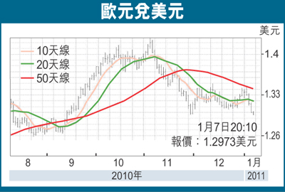 由於美國近期公布的經濟數據已是持續有所好轉,因此投資者已不排除美國於本周五公布的12月就業數據將會趨於改善,該情況除了是有機會引致美國聯儲局往後將可能會略為收縮其量化寬鬆貨幣政策的規模之外,美元匯價的升幅亦將會進一步有所擴大。預料歐元兌美元匯價將反覆走低至1.2830水平。