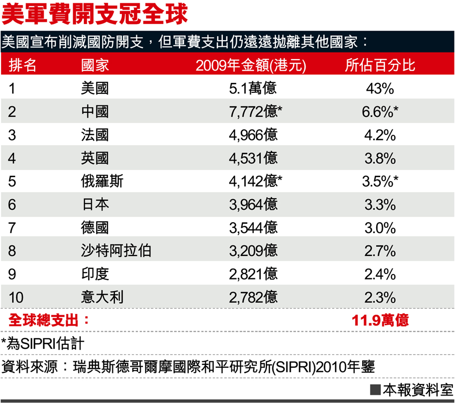 資料來源:瑞典斯德哥爾摩國際和平研究所(SIPRI)2010年鑒 ■本報資料室