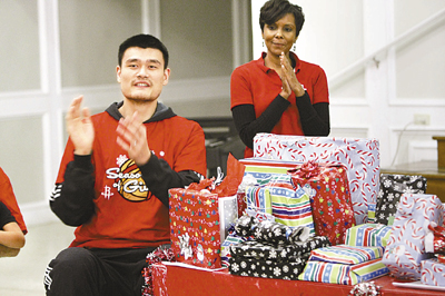 ■姚明聖誕前為美國社區小朋友分發禮物。 新華社