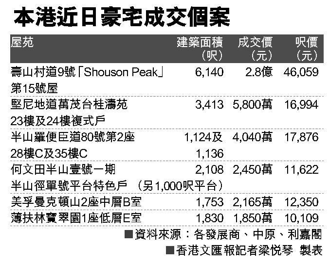 本港近日豪宅成交個案