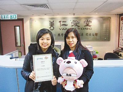■仁愛堂代表(右)接受聖誕熊捐贈。