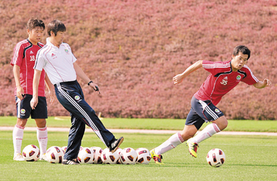 據新華社9日電 中國國家足球隊(國足)在2011年亞洲盃首戰擊敗科威特隊後,9日上午在卡塔爾首都多哈進行了恢復性訓練。球隊助理教練傅博給媒體介紹了球隊自製的用來激勵士氣的短片,稱這部短片中用到了電視劇《亮劍》的片段,並用「中國隊努力」的口號來凝聚全隊。