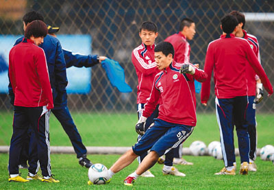 ■國奧冒嚴寒在昆明進行訓練。 新華社
