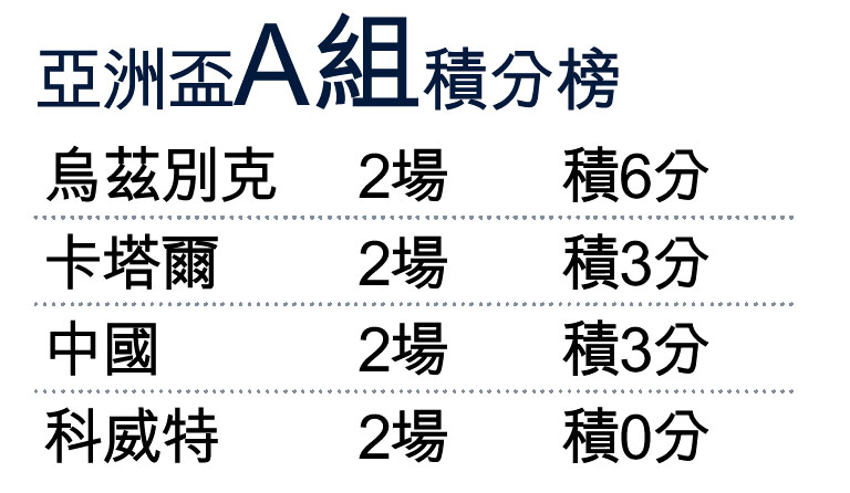 亞洲盃A組積分榜 (圖)