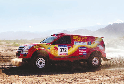 據新華社阿根廷聖胡安13日電 第33屆達喀爾拉力賽13日結束了第11賽段的比賽。參加汽車組比賽的中國車手當天全部衝進前30名,其中長城哈弗車隊的周勇在本賽段再次取得了第13名的好成績,以5小時28分57秒的成績完賽,總成績排名上升到第14位,再創新高。當天的比賽從阿根廷奇萊西托出發,終點是阿根廷西部城市聖胡安,賽程全長786公里,其中特殊賽段長622公里,是本屆達喀爾拉力賽特殊賽段最長的。