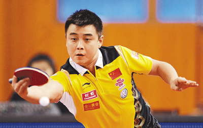 在四川省綿陽市北川體育館舉行的「大師盃」中國乒乓球年度總決賽男單決賽中,王皓以4:3勝馬琳,獲得冠軍。至於女單決賽中,郭焱以4:3戰勝劉詩雯,獲得冠軍。圖為王皓在比賽中回球。 ■新華社