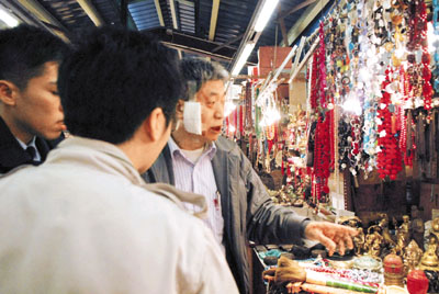 香港文匯報訊 (記者 蔣焯文) 油麻地玉器市場昨晨發生血案,兩名因爭生意結怨逾10年的玉器販商,昨晨再起爭執,有人取出一柄已生鏽的風水用日本武士刀揮舞,2人展開混亂,兩敗俱傷,另一名勸架商販亦被割傷手指,同需送院敷治,警員調查後將涉嫌武鬥2名玉器檔主拘捕。
