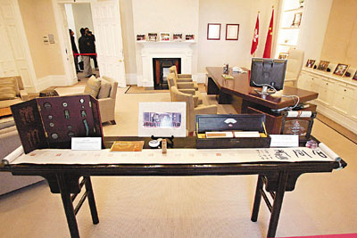 ■董建華在現時的辦公室內放滿多幅珍貴歷史相片,既莊嚴又富人情味。 香港文匯報記者梁祖彝 攝