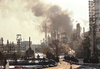 ■撫順石化公司石油二廠閃爆事故爆炸現場引發的濃煙滾滾上升。新華社