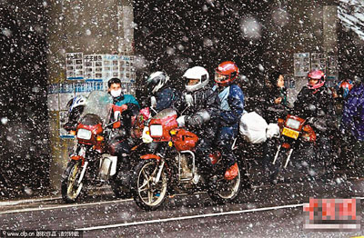 香港文匯報訊 (記者 李洢 南昌報道) 20日,記者在江西南昌火車站看到,雖然天氣寒冷,候車大廳外等候進站的旅客眾多,大雪阻擋不了人們回家的腳步。據統計部門估計,春運期間,南昌鐵路局將發送旅客1,510萬人,比2010年增加235萬、增長18.4%;江西省將發送旅客916萬人,同比增加29萬人、增長3.3%。據悉,一批從浙江返回江西的民工,今年結伴騎摩托車回家。他們身穿厚實的棉衣外加雨衣,頭戴防風頭盔,腿捆綁腿、護膝,冒著雨雪長途跋涉,成為春運交通線上一道特殊的風景。
