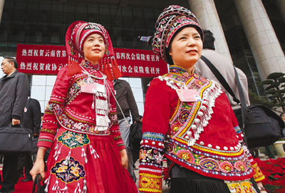 21日,雲南省第十一屆人大會第四次會議在昆明開幕, 少數民族人大代表盛裝出席。 中新社