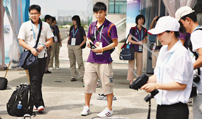 09年8月22日,在新加坡濱海堤壩,霍啟剛(左)與郭晶晶(前右)在活動中。新華社