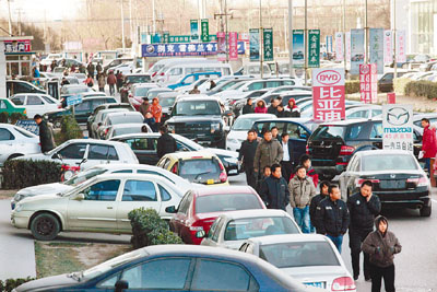 ■北京去年底公布一系列「治堵」措施,其中最嚴格的一項就是私家車限購。圖為北京亞運村汽車交易市場。資料圖片