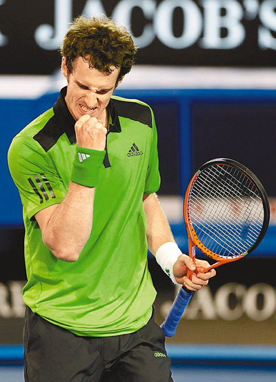 澳洲網球公開賽,昨日上演男單4強賽,由5種子、英國的梅利(圖)同7種子西班牙的費拿對壘;結果4:6先輸一盤下,「英國一哥」以7:6、6:1及7:6連追3局,以總分3:1擊敗費拿,連續第2年闖入澳網男單決賽。梅利將於周日在決賽惡鬥塞爾維亞的祖高域。梅利賽後認為費拿難以對付,而且賽事過程不似預期那樣;對於決賽的對手祖高域,梅利認為兩人實力相近,將會有一場惡戰。