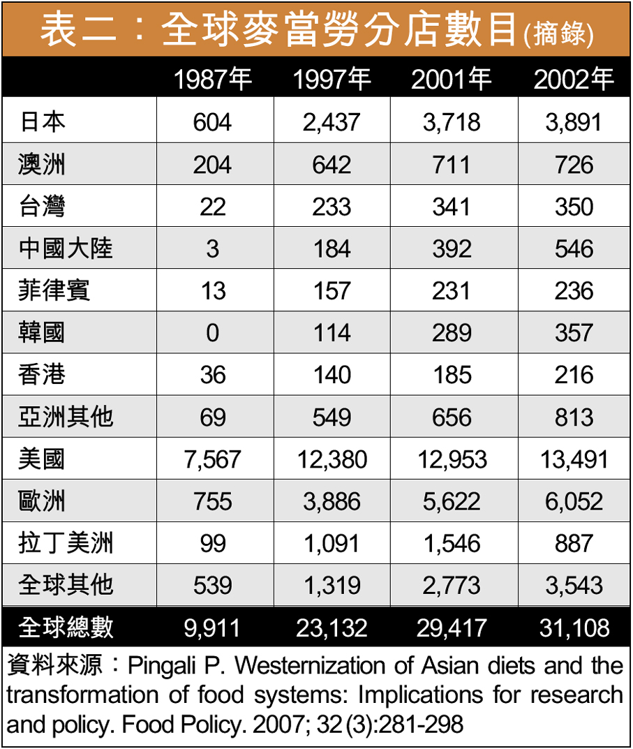 資料來源:Pingali P. Westernization of Asian diets and the transformation of food systems: Implications for research and policy. Food Policy. 2007; 32(3):281-298