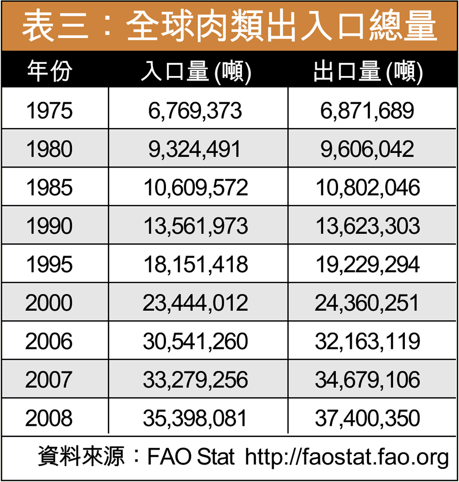 表三:全球肉類出入口總量 (2011-01-31) (圖)