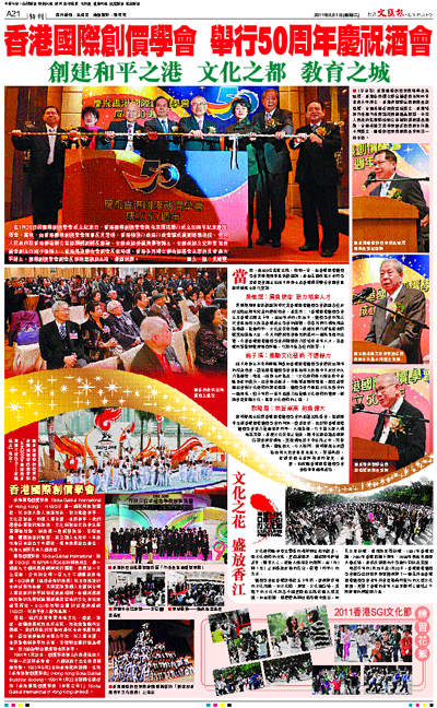 在1月26日的國際創價學會成立紀念日,香港國際創價學會假帝京酒店舉行成立50周年紀念慶祝酒會。當晚,由香港國際創價學會理事長吳楚煜、香港特別行政區行政會議成員劉遵義教授、中央人民政府駐香港聯絡辦公室協調部副部長廖勛、全國政協委員黃景強博士、全國政協文史和學習委員會副主任施子清博士、香港佛教聯合會副會長黎時煖、香港各界婦女聯合協進會主席林貝聿嘉太平紳士、國際創價學會副會長李剛壽親臨主禮,場面熱鬧。 ■文、攝︰吳綺雯