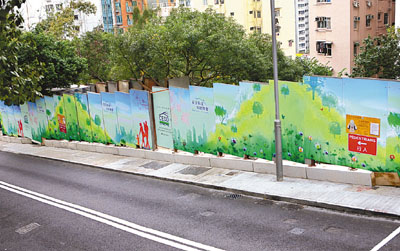 ■西環蒲飛路的斜坡工地圍板,已於上月中加入美化圖案。相片由土木工程拓展署提供