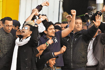 Google(谷歌)高層古內姆被捕12天後前天獲釋。他承認透過facebook策劃示威,形容已變成「所有埃及人的革命」。然而,許多人希望他會現身解放廣場,並已有9萬人加入fb一個群組,提名他為示威者發言人。他在街頭被3名便衣警察拘捕,扣留期間一直被蒙眼,但沒受到虐待。當電視台向他播放示威者死亡的片段時,他激動落淚,指這是死抓著權力不放的人的錯。 ■《紐約時報》