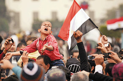 ■小孩也大喊口號,要穆巴拉克下台。路透社