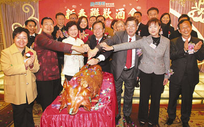 在灣仔支部舉行的新春團拜酒會上,譚Sir再強調,港人在過去的虎年遇到很多困難,故特區政府在庫房錄得龐大進帳時,必需加強對低收入人士的支援,期望「特區財爺」曾俊華「開倉派富」,善用政府盈餘為民解困,在財政預算案推出「拓經濟保民生」的好消息,協助小市民抗擊通脹,發展經濟,紓緩生活壓力。