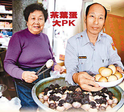 據中新社18日電 大陸遊客蜂擁而至引發效應,台灣日月潭玄光寺旁日銷上千顆的「阿婆茶葉蛋」遇到勁敵。知名度不亞於阿婆的台南新化知義派出所所長廖世華的「所長茶葉蛋」,最近進駐潭邊,「所長PK阿婆」的茶葉蛋大戰,正在日月潭畔悄悄上演。