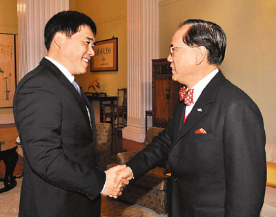 ■曾蔭權昨與訪港台北市市長郝龍斌會面。