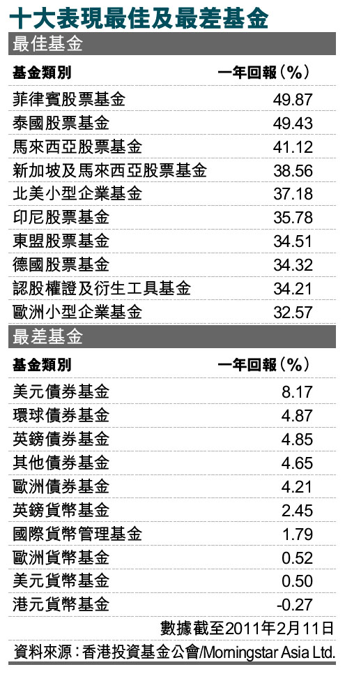 十大表現最佳及最差基金 (2011-02-23) (圖)