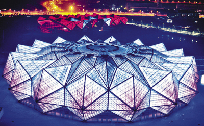 深圳龍崗區大運中心體育館(見圖)24日進行了首次亮燈測試。 新華社