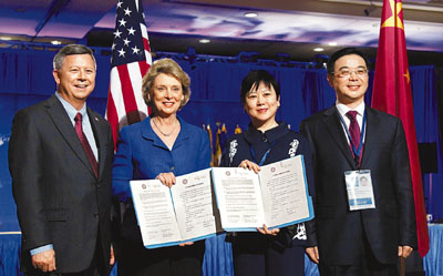 香港文匯報訊 據中新社華盛頓26日電,中美26日在華盛頓簽署具體協議,確定第一屆中美省州長論壇將於今年7月在美國猶他州舉辦,此舉宣告旨在推動兩國地方政府交流的中美省州長論壇正式啟動。湖南省委書記周強代表中方參加中美省州長論壇啟動儀式。