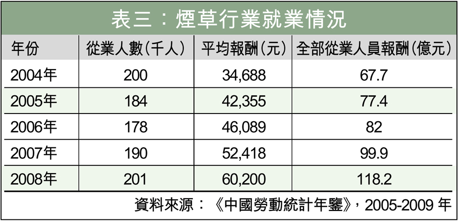 表三:煙草行業就業情況