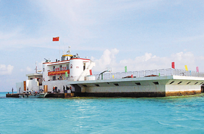 ■南沙群島上的第四代建築--赤瓜礁礁堡旁增設了直升機起落平台。