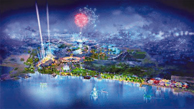 香港文匯報訊(記者 張一波 上海報道)在上周召開的迪士尼投資者大會上,負責公園和度假村的Tom Staggs向外界公佈了一張藝術設計草圖,揭開上海迪園的神秘面紗。