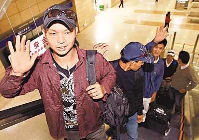 ■7名遭索馬里海盜劫持的中國漁民昨日安全抵滬。新華社