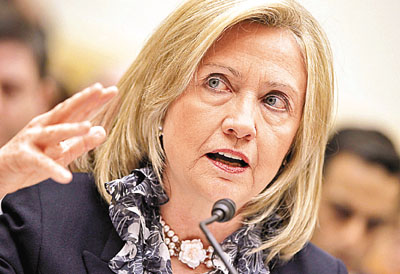 香港文匯報訊(記者 李茜婷 北京報道)3月3日,美國國務卿希拉里(見圖)在參議院聽證會上警告說,在與中國就國際影響力展開的正面交鋒中,美國有失敗的風險。她稱,中國用「飲飲食食」的方式招待亞太地區領導人,將影響美國在該地區的影響力。截止記者發稿時,中國外交部對希拉里言論尚無回應。中國國際問題研究所美國研究部主任劉卿向香港文匯報記者表示,美國的此種「飲飲食食」的說法有失超級大國的風度,不免顯現出「小家子氣」。