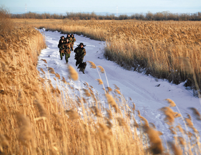 ■黑瞎子島守島官兵巡邏在蘆葦蕩深處。