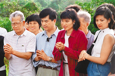 ■駱家輝夫婦(前左二、三)返家鄉廣東台山尋根祭祖。資料圖片