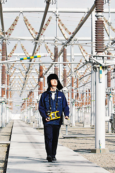 ■新疆巴州750千伏變電站正式投入運行,首月運行順暢。2月9日,新疆巴州750千伏變電站的工作人員在檢查變電設備。 資料圖片