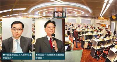 除中銀國際外,東亞亦於年頭低調加入戰團,成為本地首家獨立華資銀行的窩輪發行商。該行副行政總裁兼投資總監李繼昌指,是次推出的窩輪系列為該行發展的重要里程碑,期望這類產品可進一步增加該行的非利息收入。對於該行搶攻窩輪市場姍姍來遲,該行指由於銀行受金管局監管,於推新產品或服務時審批會較謹慎,加上作為存款機構,於風險管理上也需特別小心。