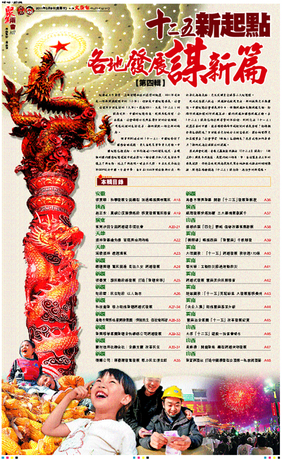 藉此兩會之機,香港文匯報特別推出「『十二五』開局」、「新主帥」風采系列報道,展望內地31個省、市、自治區未來五年的發展規劃,詳析各地政府為提高民眾幸福指數而推出的種種舉措,解讀各路諸侯為「十二五」開好局、起好步的新思路。